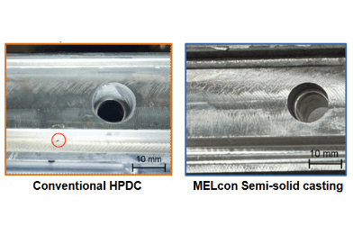 Purpose and industrial challenge High-pressure die casting (HPDC) manufacturers continuously face challenges related to porosity, oxide entrapment, limited mechanical properties, and tool wear. These issues directly affect part quality, process stability, and production costs. MELcon Semi-Solid Casting addresses these challenges by enabling the production of high-quality semi-solid material using conventional HPDC equipment.