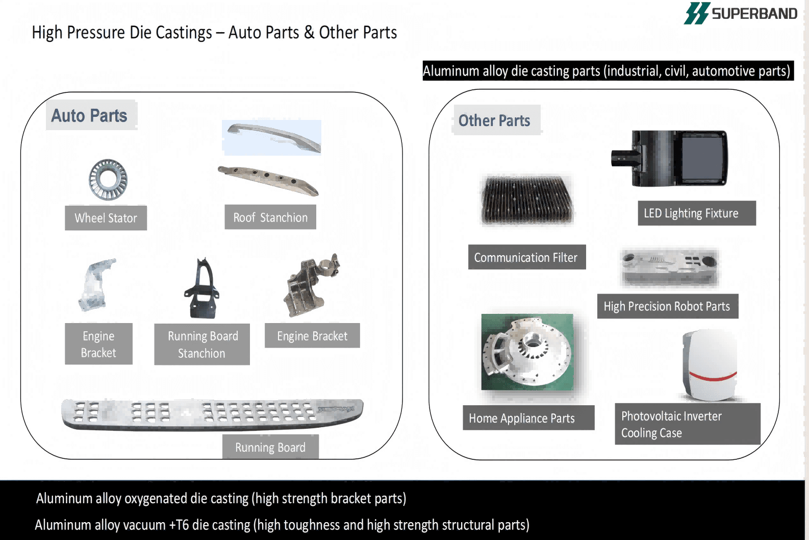 Superband specialize in R&D and production of die-casting products and aluminum alloy casting moulds in both China factory Thailand factory, committed to delivering full-chain, cross-technology integrated solutions to meet customers' one-stop needs.
